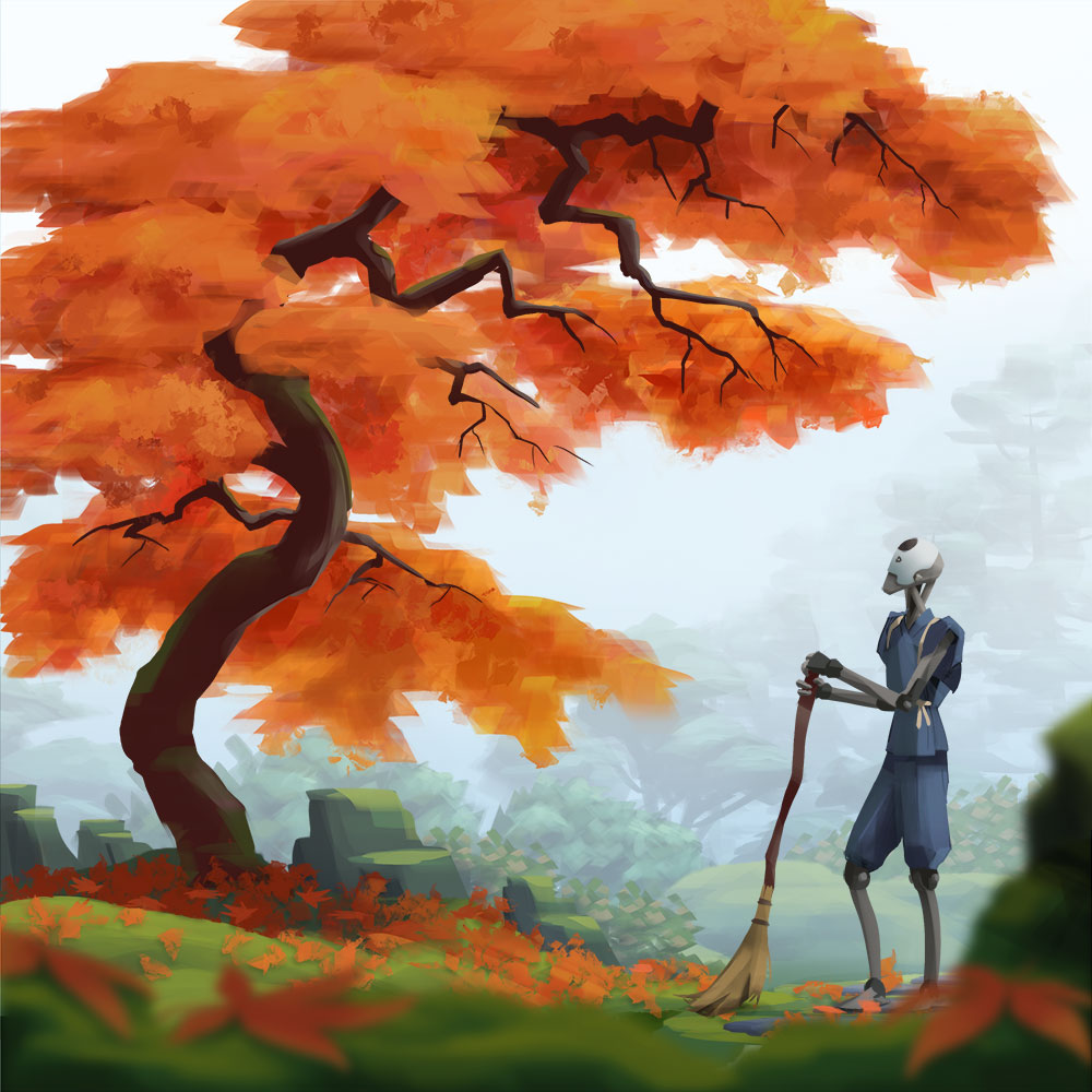 The steambot let a slow sigh of steam escape, still staring at the thick layer of red leaves that covered the path around the meditation hall.